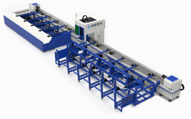 無錫橋聯恒通激光科技有限公司研發的三卡盤全自動上下料激光切管機,三卡盤可同時加緊并進行切割,切割精度高;可實現無尾料切割,節約生產成本,提高生產效益??ūP具有自我調節中心功能,可實現快速定心裝夾,分段式送料切割,提高切割精度。三卡盤結構配合中間卡盤的雙夾持功能,能夠輔助矯正小管材的自身形變,提高切割精度。高速全自動切割,滿足圓管、方管、矩形管等異型管材的切割。